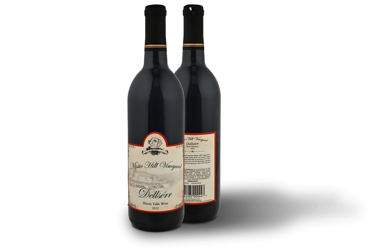 Dellsérr is a premium dry red with dominant overtones of black cherry and pomegranate. Pairs well with pork and pasta dishes.